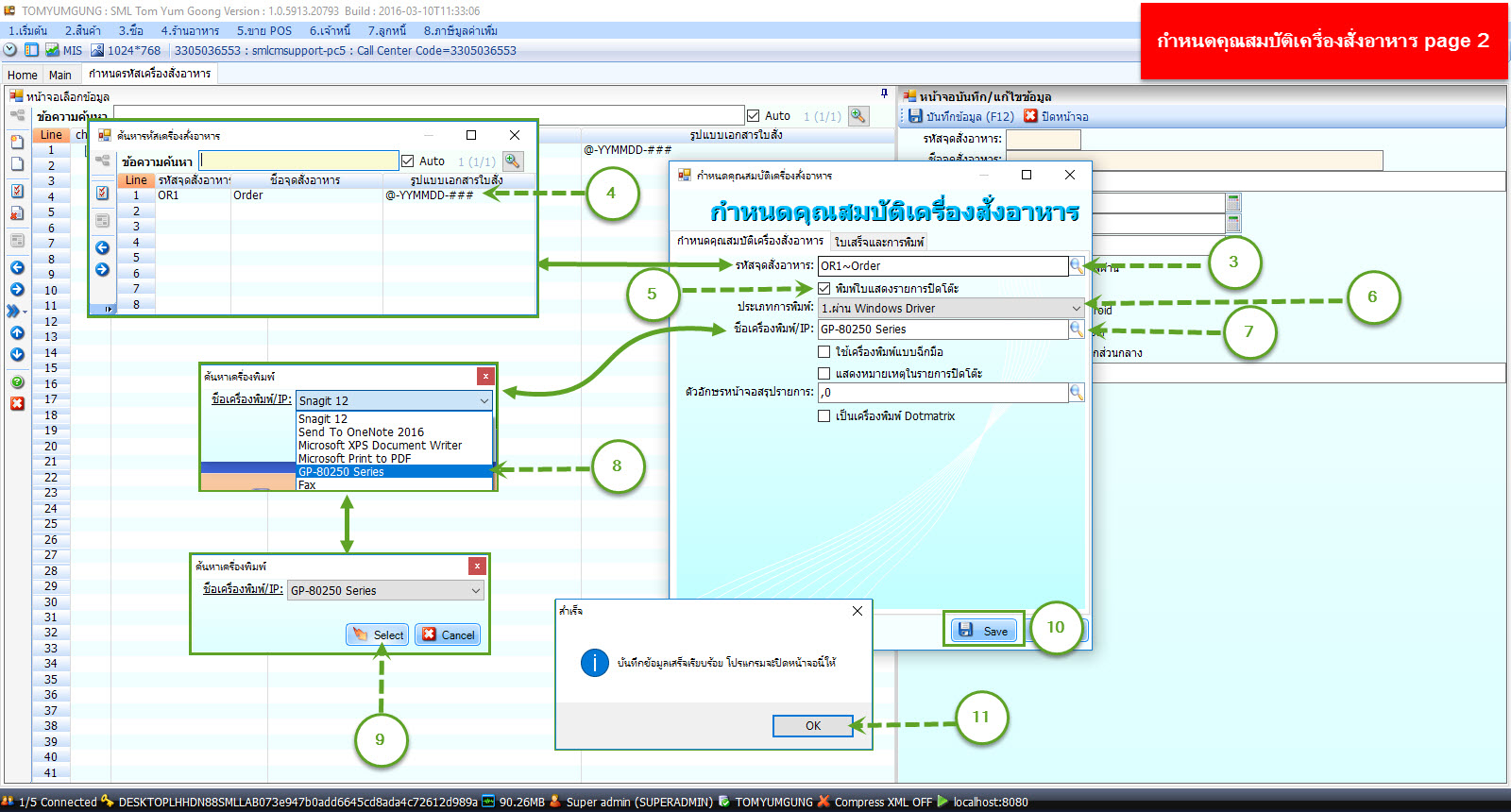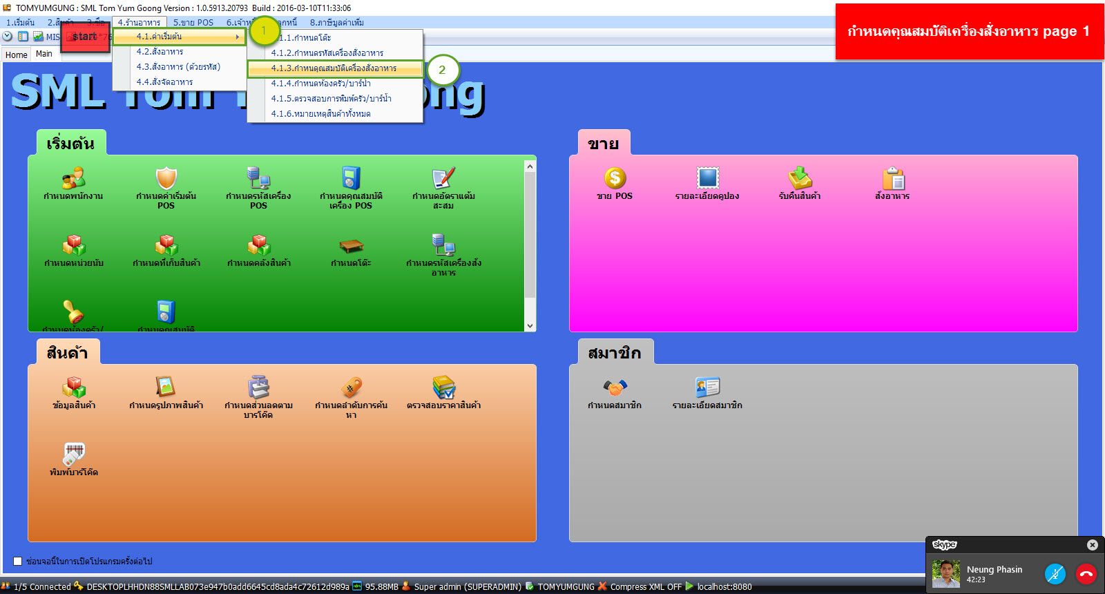 (3) กำหนดคุณสมบัติเครื่องสั่งอาหาร i) กำหนดค่าเริ่มต้นcollapse child menu (1) กำหนดโต๊ะ (2) กำหนดรหัสเครื่องสั่งอาหาร (3) กำหนดคุณสมบัติเครื่องสั่งอาหาร (4) กำหนดห้องครัว/บาร์น้ำ (5) ตรวจสอบการพิมพ์ครัว/บาร์น้ำ (6) หมายเหตุสินค้าทั้งหมด
